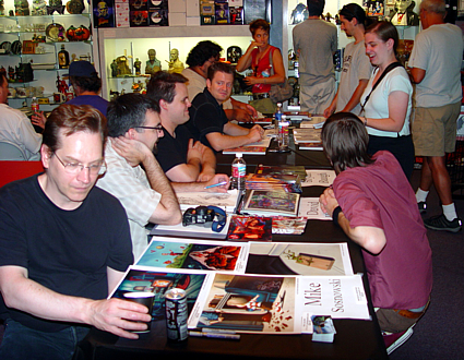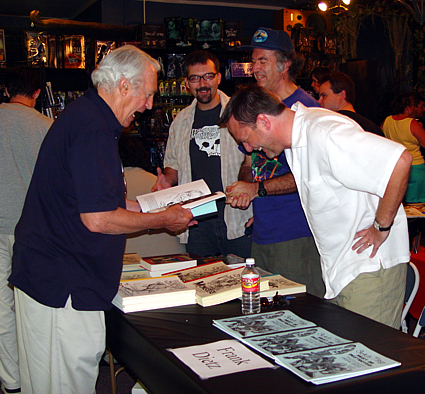 The man in the blue shirt is artist, William Stout. William was
