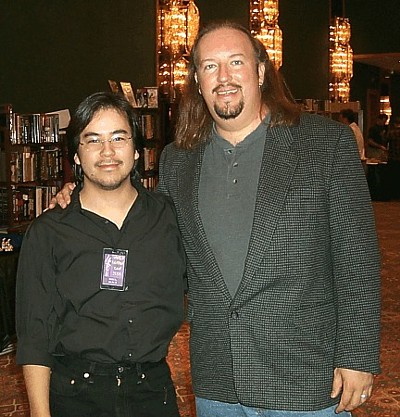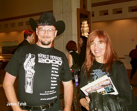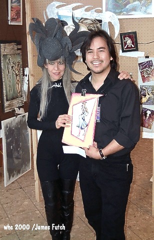 GETTIN' ARTSY No one ever described Lovecraft's Cthulhu in such a lovely and provocative manner. James poses with the tentacle headed woman.